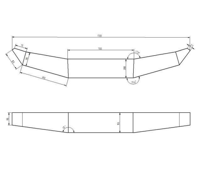 На чертеже показан эскиз силового бампера для автомобиля Нива шевроле