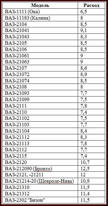 РЕАЛЬНОЕ ПОТРЕБЛЕНИЕ БЕНЗИНА НА МОДЕЛЯХ ВАЗ
