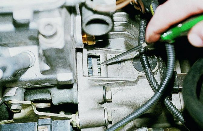 4.Отключаем датчик коленвала, разъединив на нем разъем.