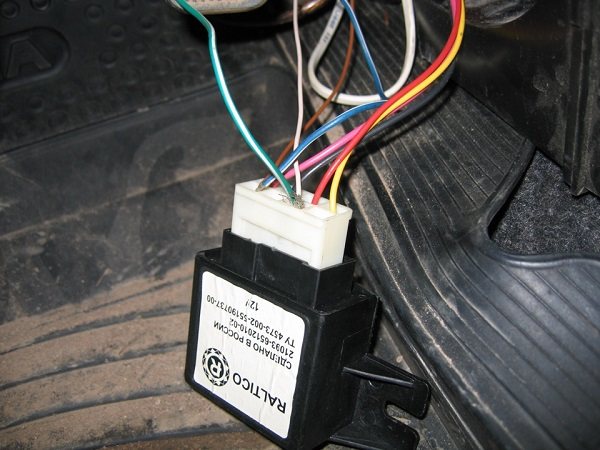 Управляющий модуль находится под «торпедо» слева, а в его разъеме, закрепленном на корпусе, присутствуют шесть проводов: