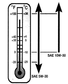 Согласно этой схеме, при очень низких температурах рекомендуется использовать масло 5w-30. Если температура превышает -18°C, можно применять 10w-30 или 15w-40.