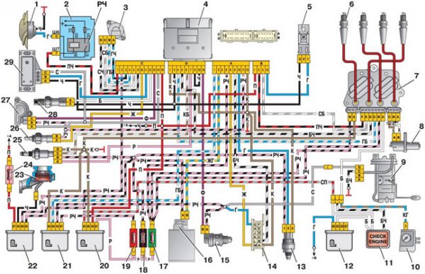 Схема электрооборудования ВАЗ 2104 (карбюратор)
