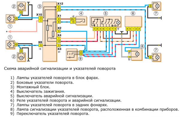 | 8 (8А) | Выключатель и реле-прерыватель указателей поворота в режиме аварийной сигнализации. |