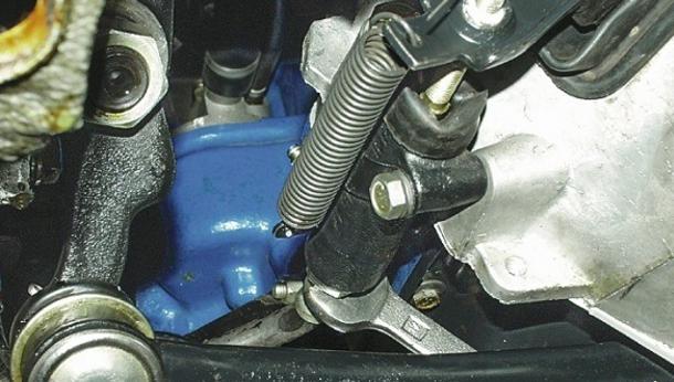 5) Теперь отсоедините скобу от цилиндра, которая также была закреплена болтами вместе с цилиндром и служит для крепления оттяжной пружины.