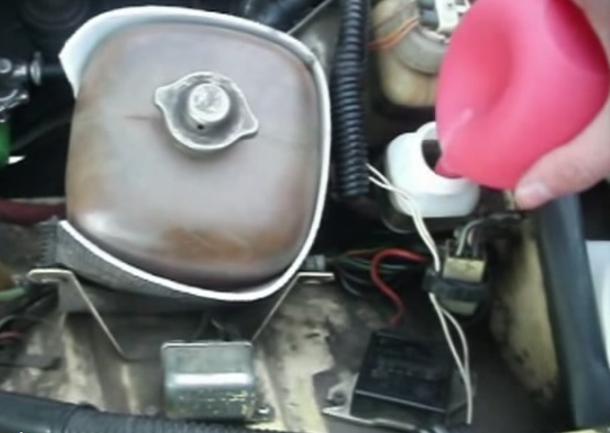 - Заполните бачок новым жидкостью, следя за тем, чтобы не допустить попадания воздуха в систему.