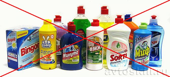 - Средство для мытья посуды. Самый плохой и безнадёжный вариант, поскольку справиться с машинным маслом ему не под силу.