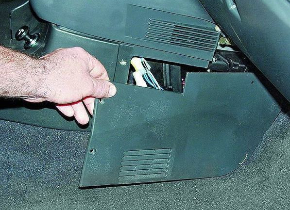 Установка бортового устройства – это достаточно простая задача, не требующая глубоких знаний в области электроники, и её можно выполнить самостоятельно. При приобретении качественной модели в комплекте обычно присутствует колодка контактов. С её помощью необходимо подключить бортовой компьютер к электронному разъему. Этот разъем можно найти в нижней правой части панели приборов, для доступа к нему потребуется снять пластиковую накладку, как показано на иллюстрации.