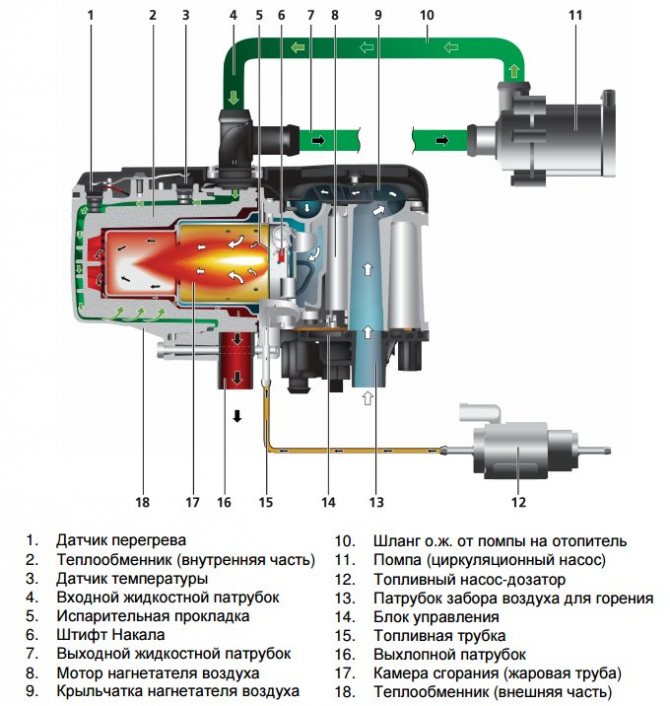 Описание и назначение автономного подогревателя Вебасто