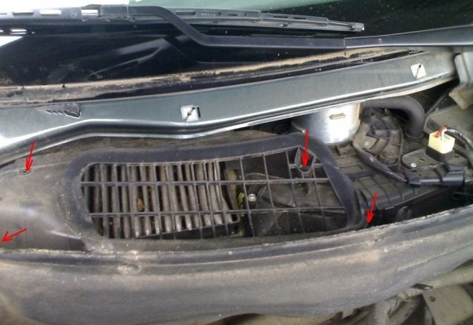 - Со стороны пассажирского сидения, под лобовым стеклом откручиваем решетку, за которой установлен ваш компонент очистки воздуха.