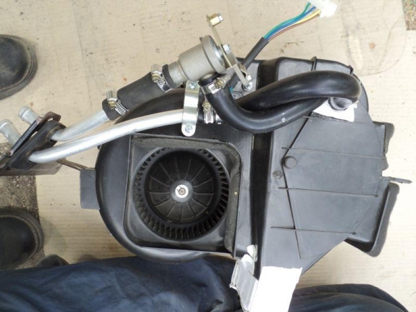 Электрический вентилятор печки обеспечивает принудительную подачу воздуха в салон автомобиля. Он фиксируется парой винтов в верхней части печки. Конструкция отопителя разработана так, что вентилятор можно легко снять через пространство под капотом.