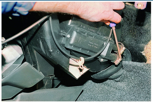 - Демонтируйте воздуховод внутренней вентиляции, отключив его от корпуса отопителя.