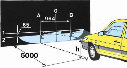 Горизонтальная разметка. Проведите горизонтальную линию через центры фар и обозначьте ее буквой «N». На 65 миллиметров ниже этой линии проведите еще одну, которую следует пометить буквой «Р». После этого можно приступать к регулировке света.