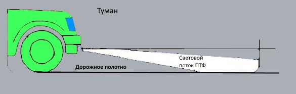 Когда на улице туман или идут обильные осадки, водителю кажется, что перед ним возникает «стена» из отражённых лучей, сквозь которую трудно различить дорожное покрытие и обочину. Наблюдения показывают, что туман обычно висит на высоте до полуметра от земли, поэтому фонари, установленные ниже и светящие под туманом, гораздо эффективнее освещают дорогу, чем стандартные фары.