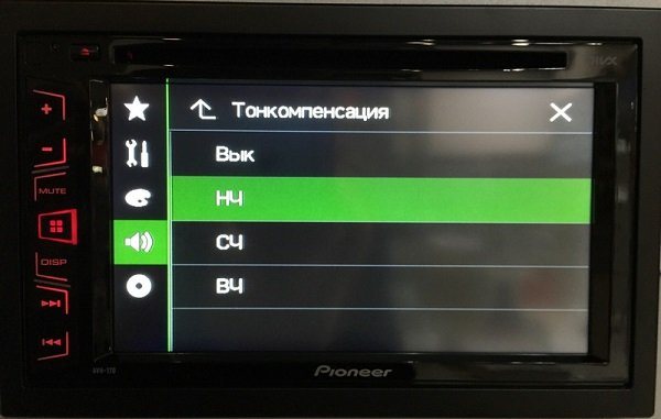 Последнее действие в этом пункте — регулирование тонкомпенсации магнитолы, для чего заходим в меню и ищем пункт LOUDNESS, где выбираем значение HIGH.