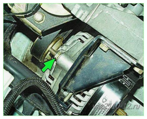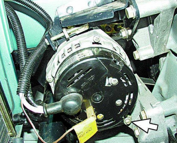 - Ослабьте крепление генератора как сверху, так и снизу, используя гайку;