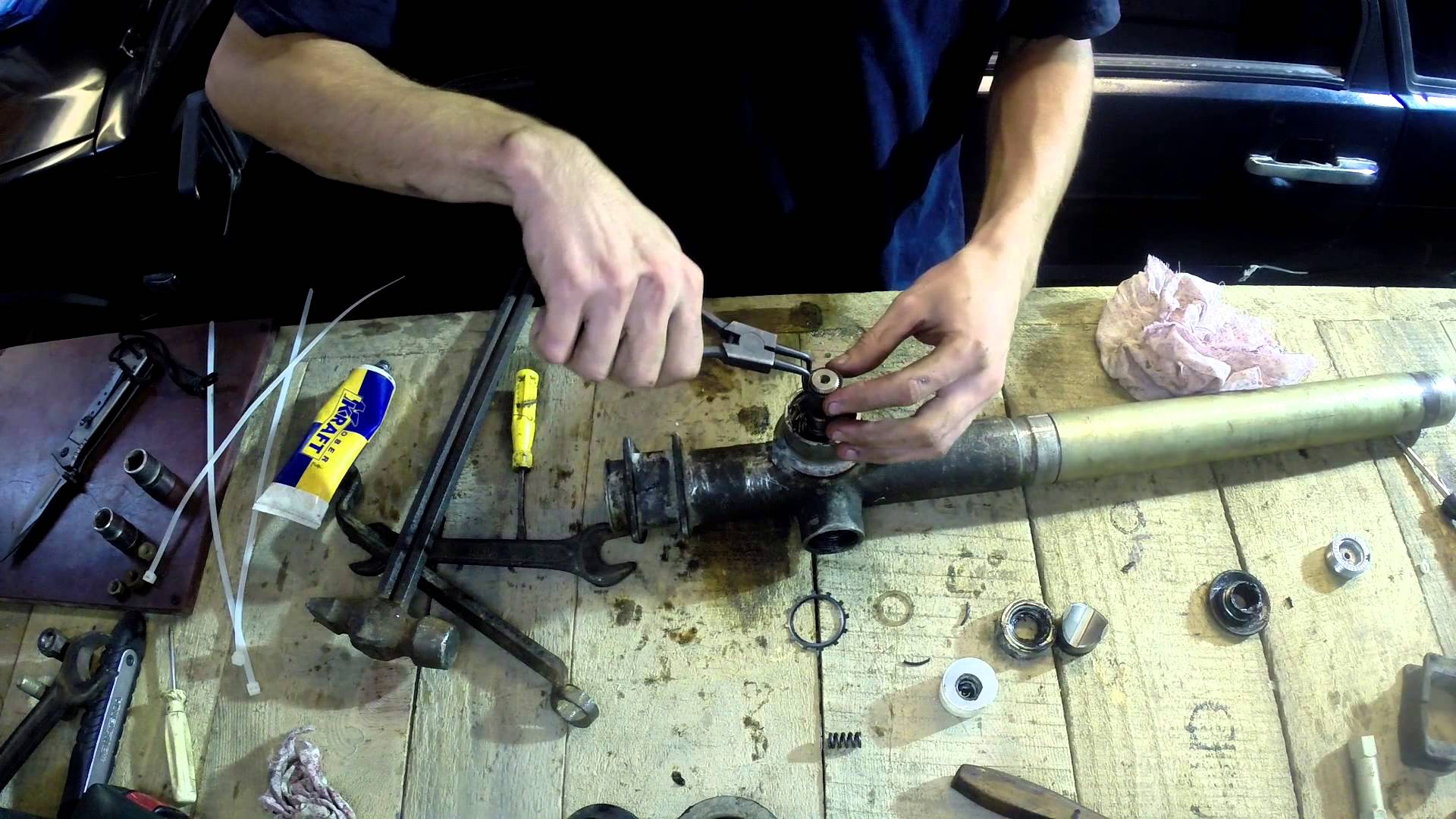 - С помощью специального инструмента выпрессовывается палец из рычага. Если такого инструмента нет, можно воспользоваться молотком или монтажкой;