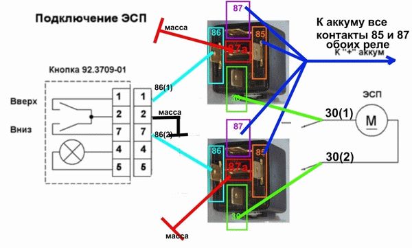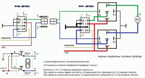 Alexmtx › Блог › Правильные схемы подключения электростеклоподъемников (ЭСП) и доводчика стекол