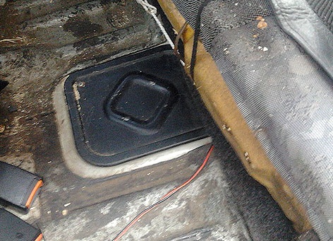 - Сначала снимите заднее сиденье, чтобы получить доступ к лючку бензонасоса.