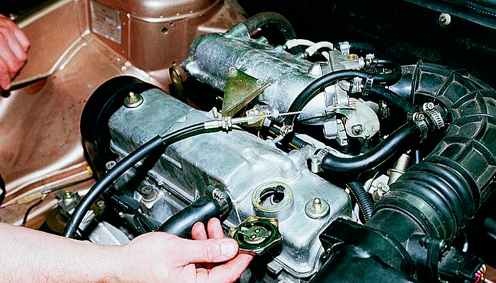 - Откручивается крышка маслозаливной горловины, вращая ее против часовой стрелки.
