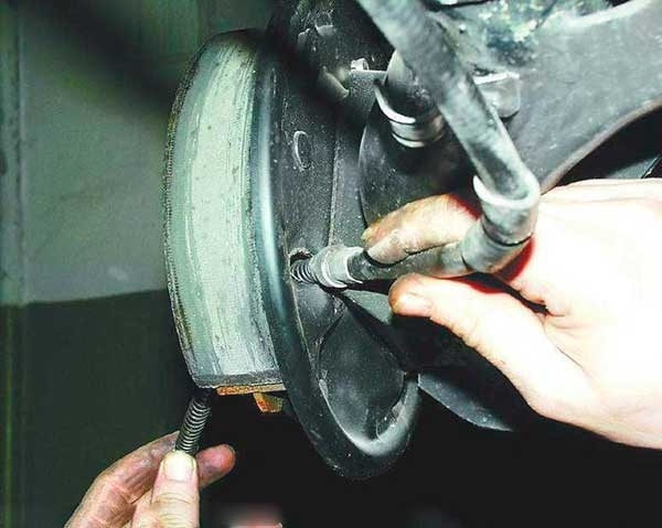 - Извлеките трос из держателя, затем из кронштейна, и после этого достаньте его через тормозной шип;
