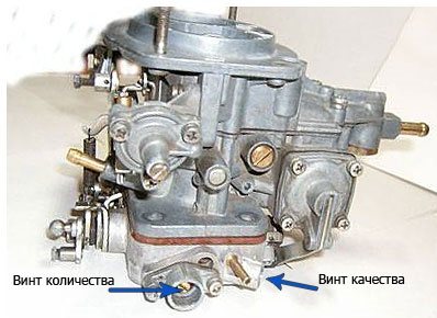 Убедитесь, что в шланге, соединяющей карбюратор с регулятором угла опережения на трамблере, нет разрежения. Теперь нужно отрегулировать качество смеси. Поочередно вкручиваете винты до тех пор, пока не начнет слегка трясти двигатель. Теперь нужно добиться нормальной и максимально устойчивой работы. Для этого по очереди выкручиваете винты качества. Не делайте больше одного оборота. Эта настройка исключительно на слух, но нормально отрегулировать карбюратор копейки таким способом вполне возможно.