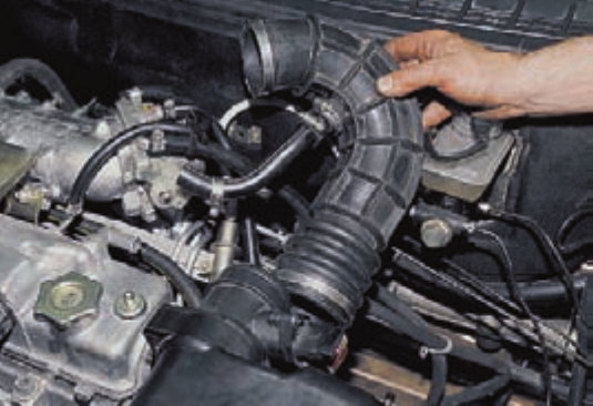 Ослабьте хомуты на воздушном и картерном шлангах. Снимите воздушный шланг целиком.