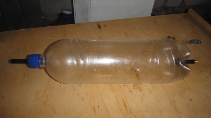Просверлите отверстия в дне и крышке бутылки, установите в них ниппели.