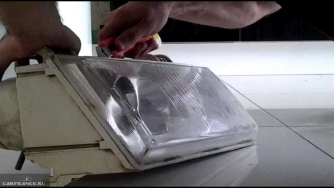 Разборка фары в Киржаче не представляет особой сложности. Стекло фары приклеено с помощью герметика, поэтому для его снятия понадобится канцелярский нож. Рассмотрим процесс по шагам: