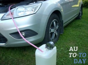 В гаражных условиях для слива топлива чаще всего используется шланг. Лучше всего, когда он выполнен из маслостойкого материала. Один конец шланга помещают в отсек для бензина, предварительно сняв с него крышку горловины. Через второй конец происходит удаление жидкости.