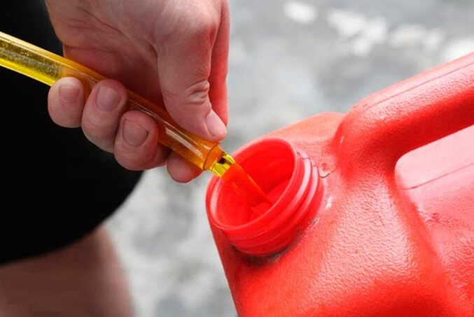 Использование шланга — самый распространённый и простой способ слива топлива из бака. Всё, что вам нужно, — это шланг и ёмкость для сбора топлива. Вставьте шланг в бак и отсосите воздух с другого его конца. Это начнёт подачу топлива, которое затем можно будет перелить в ёмкость.