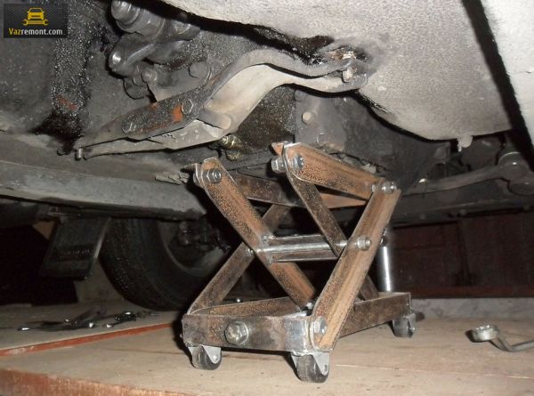 - Если подъемника нет, можно воспользоваться гаражом со смотровой ямой, эстакадой и лебедкой или привлечь трех помощников.
