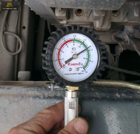 б. если давление растет медленно, это может свидетельствовать о том, что кольца износились (это можно проверить, добавив немного масла и повторив замер; если давление нормализуется – виноваты кольца).