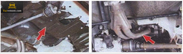 Спускаемся под автомобиль, где отключаем тягу скоростей и спидометр.