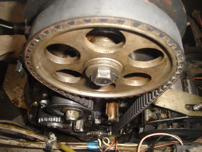 - Для начала потребуется демонтировать шкивы с обоих коленвалов.