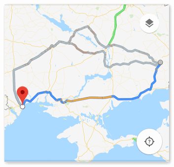 - Не использовать развороты, дороги без покрытия или с платным проездом.