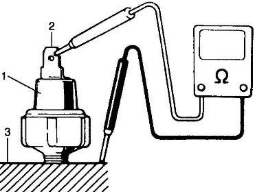 - Проверяем цепь от датчика к контрольной лампе. Отсоединяем клемму с датчика и прислоняем ее на массу. При исправной цепи, лампа давления масла должна погаснуть. Если нет, возможно в цепи где то обрыв.