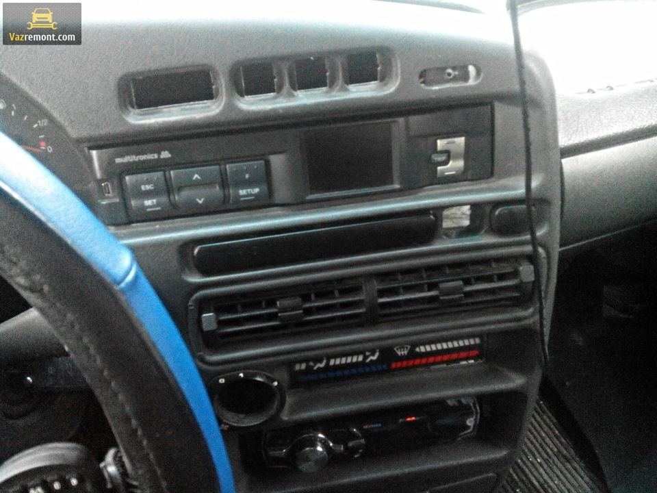 извлечь все кнопки и ручки регулировок (для этого аккуратно подденьте их отверткой); - открутить крестообразной отверткой саморезы, фиксирующие щиток панели приборов (по одному с каждой стороны);