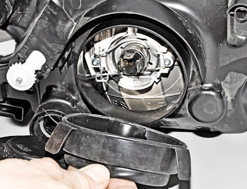 6. Из корпуса блок-фары вынимается лампа и на ее место устанавливается новая – в обратной последовательности тем действиям, которые были описаны выше.