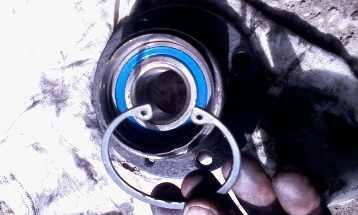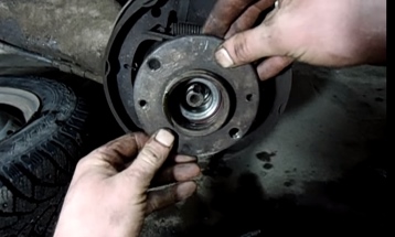 После выполнения этих действий шарикоподшипник должен легко сняться с цапфы. Однако иногда может случиться так, что сходит только внешнее кольцо, а внутреннее остается на месте. В таком случае потребуется снять тормозные колодки, а оставшуюся часть нужно удалить с посадочного места с помощью зубила.