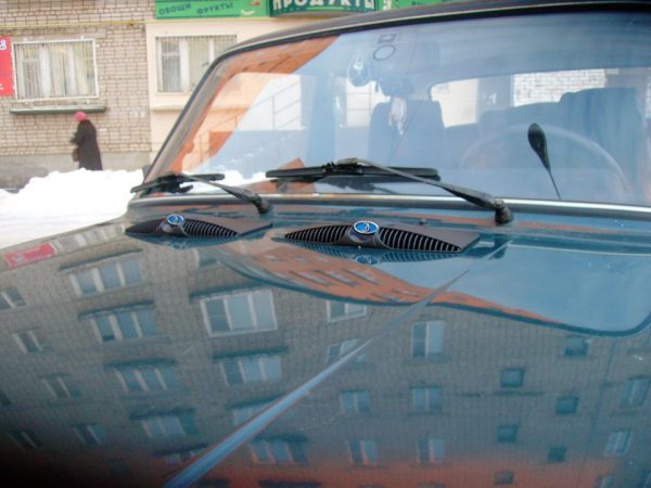 Наиболее популярными являются пластиковые воздухозаборники. Некоторые мастера изготавливают такие детали самостоятельно. Установка данного элемента требует минимальных затрат времени: монтаж осуществляется с помощью саморезов через вентиляционную решётку на капоте. Сначала крепёж просто прикручивается, затем пластиковая деталь выравнивается и окончательно фиксируется. Поскольку на капоте ВАЗ 2107 имеется две решётки, соответственно, потребуется установить два воздухозаборника.