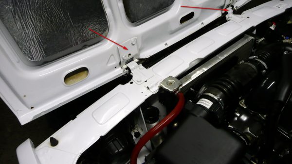 - Снимите обивку под капотом, чтобы получить доступ к механизму открывания.