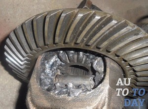 - Формирование дефектов, которые нарушают правильное положение элементов дифференциала, в результате чего они выходят из строя. Когда износ достигает критической отметки, ось может сломаться, а шестерни вываливаются из дифференциала, повреждая картер трансмиссии.