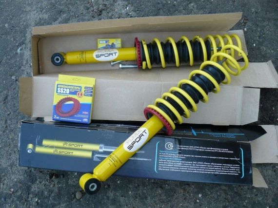 - Sport. Жесткость этих стоек на 80% выше, чем у стандартных. Благодаря этому они отлично удерживают дорогу, однако поездки по неровным участкам могут оказаться менее комфортными. В этой категории также доступны укороченные стойки, предназначенные для занижения автомобиля;
