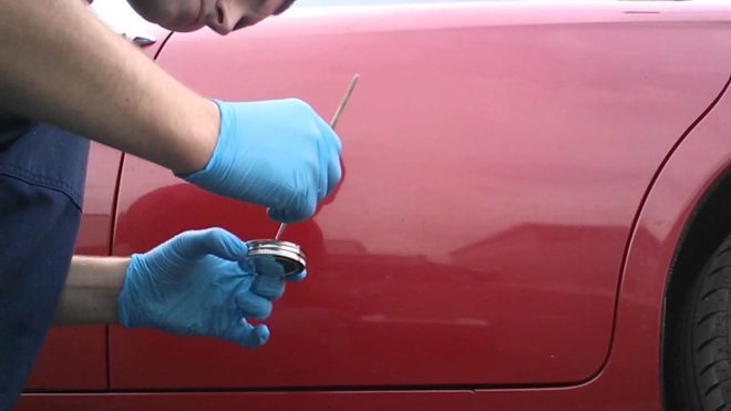 Если с первого раза добиться желаемого результата не удалось, процедуру повторяют. Таким способом можно избавиться от массивных царапин, которые не достигли металла.