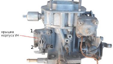 - основного корпуса, в котором располагаются диффузоры, главная дозирующая система (ГДС), система холостого хода, экономайзер и ускорительный насос;