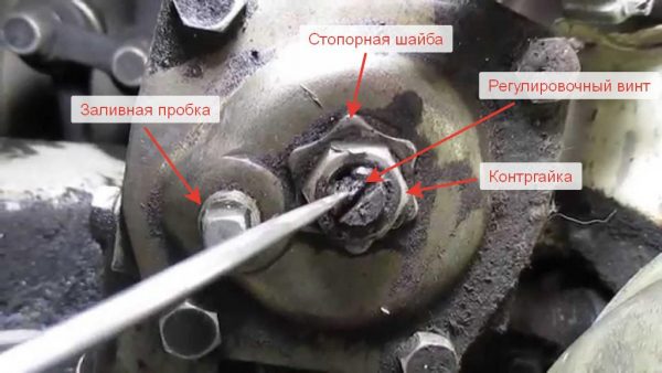 После завершения регулировки необходимо удерживать винт отвёрткой и затянуть гайку.
