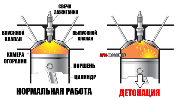 При детонации скорость распространения пламени достигает около 2000 м/с, что является очень высоким показателем. Такие нагрузки способны серьезно повредить двигатель изнутри.