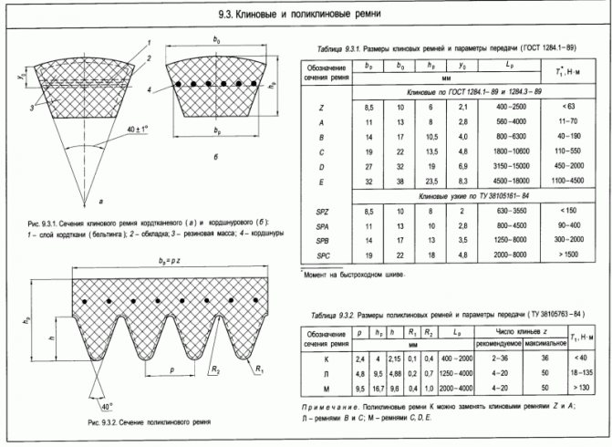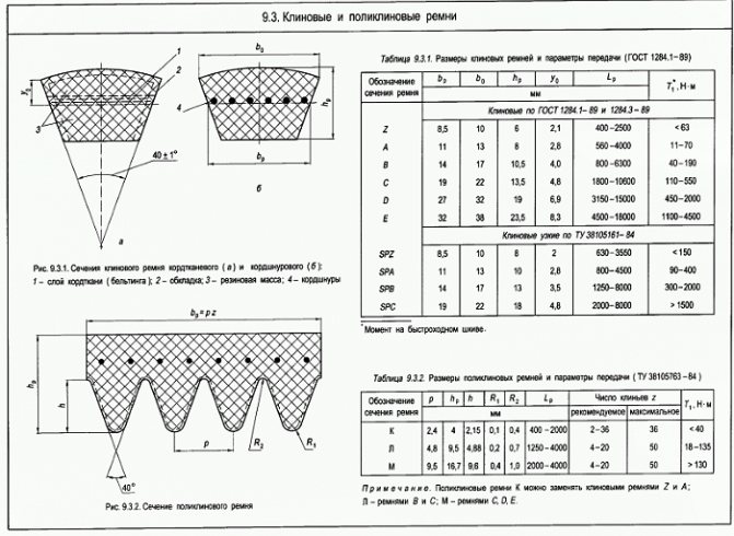 Обозначение клиновых ремней по ГОСТ 1284-89