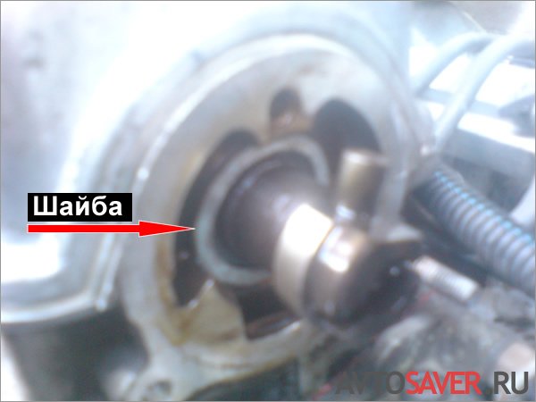 Если распредвал стал вращаться слишком туго или зажат полностью — снова снимаем крышку, вынимаем шайбу и обрабатываем её по толщине: