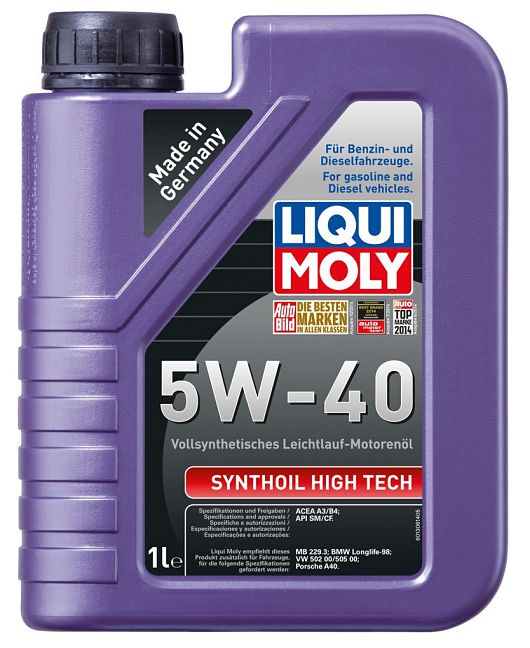 Серия моторных масел Ликви Моли Synthoil действительно является универсальной. Это высококачественная синтетика, которая полностью соответствует всем стандартам, предъявляемым к подобным смазочным материалам. Она является настоящей, сто процентной и, вероятно, практически идеальной. Масло подходит для различных автомобилей и типов двигателей. Одним из таких универсальных вариантов является LIQUI MOLY 5W40 Synthoil High Tech.